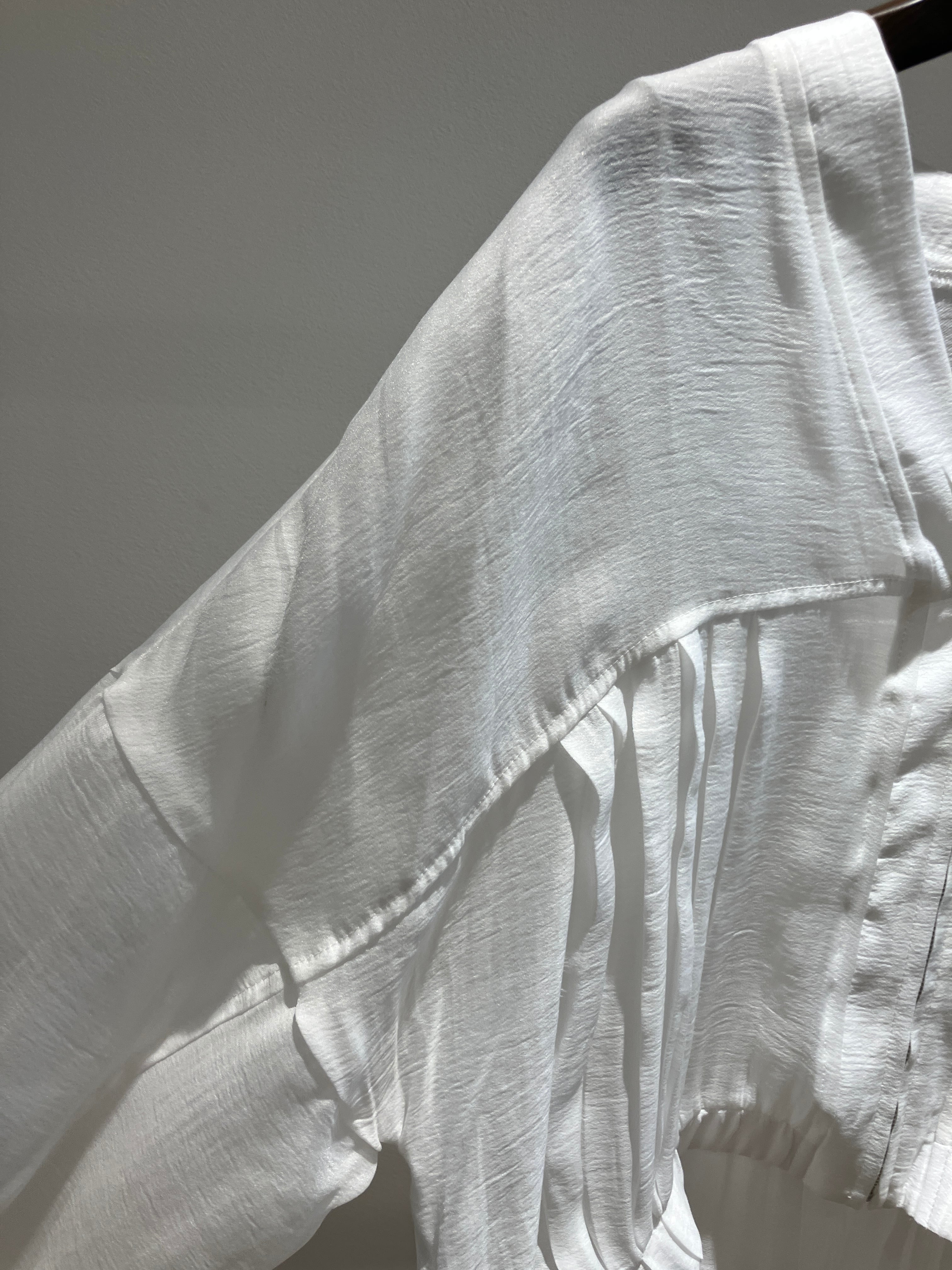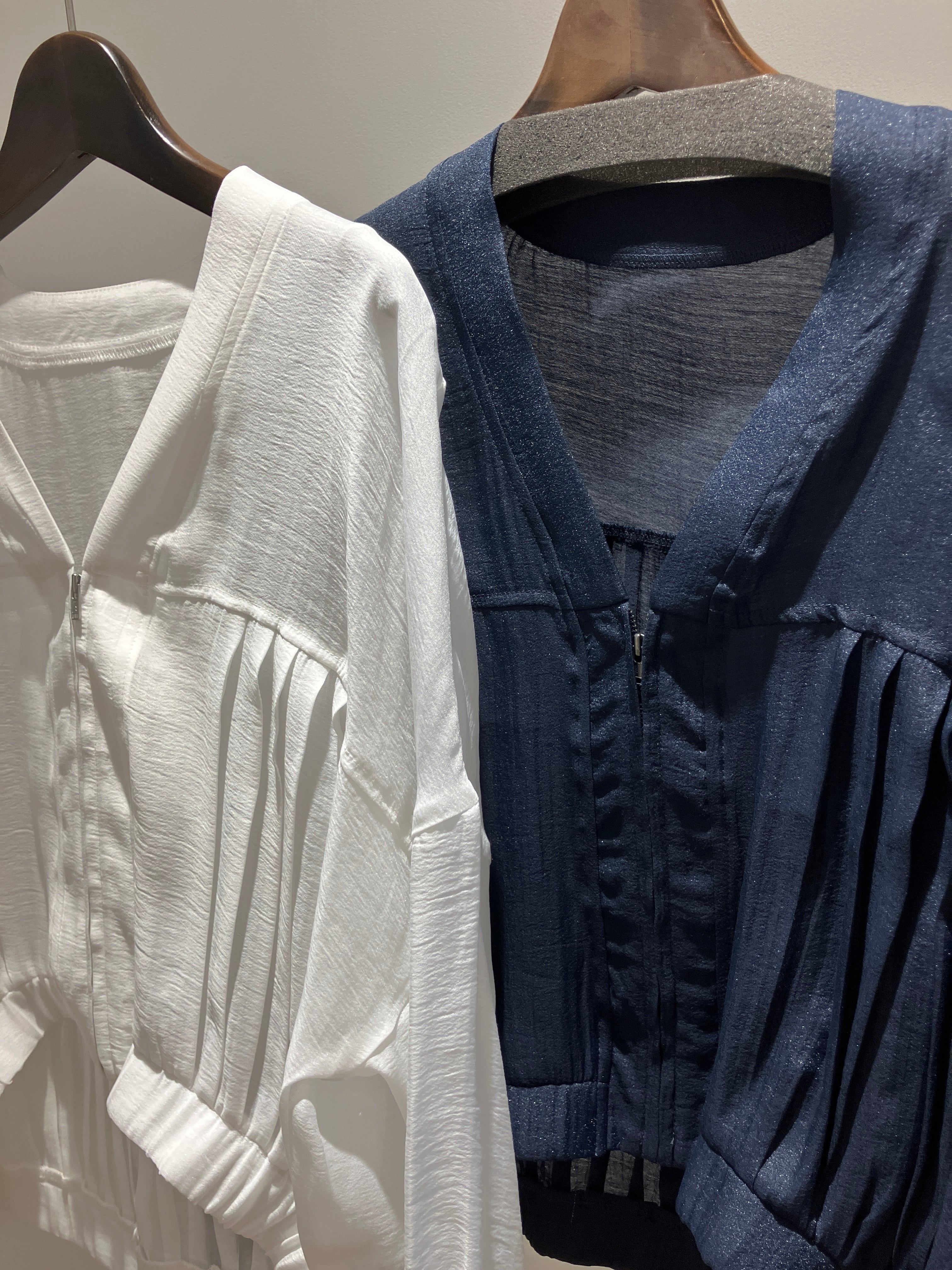 さらっと羽織るだけで、夏のコーディネートを軽やかにアップデートしてくれる「シアーブルゾン」。トレンドのシアー感が、重たくなりがちな季節の羽織りを涼しげで女性らしい印象へと変えてくれます。シルエットにもこだわり、裾には前後差をつけました。フロントをすっきりと、バックを少し長めに設定することで、気になる腰回りをカバーしながら、着るだけで自然とこなれた重心バランスに。さらに、バックには贅沢にギャザーを寄せており、動くたびにふんわりとした立体感のある後ろ姿を演出します。カジュアルなタンクトップやワンピースの上からさっと羽織るだけで、レディライクな抜け感が完成する、この夏の頼れる救世主です。